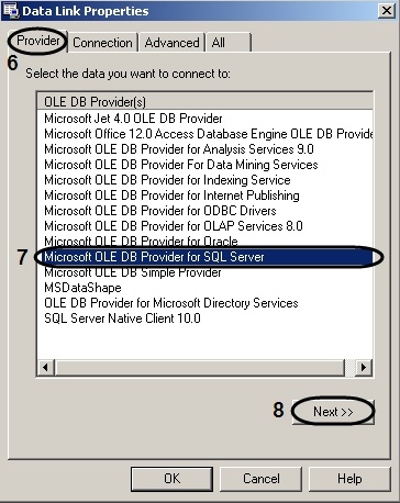 - Select Microsoft OLE DB Provider for SQL Server from the OLE DB Provider(s) list.