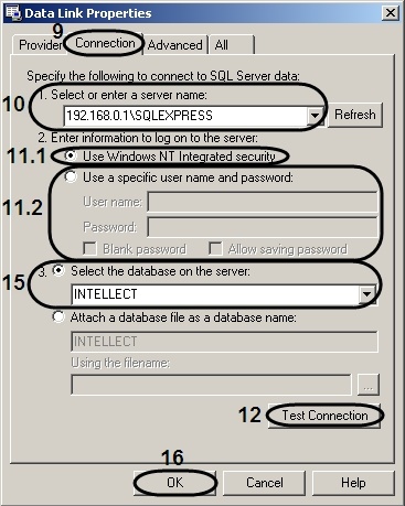 Different parameters need to be entered, with different authentication techniques for MS SQL server connection:- If MS SQL server authentication is performed through a user’s Windows OS account, switch to to the Use Windows NT Integrated security position. The user’s current account on the computer, from which the synchronization is performed, should be logged into the computer with MS SQL server and the database to be synced with.