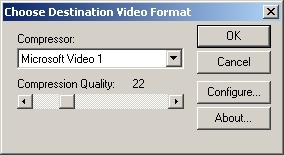 The Video button in the Export Setup dialog box opens a dialog box for choosing a video codec to be used for video compression.