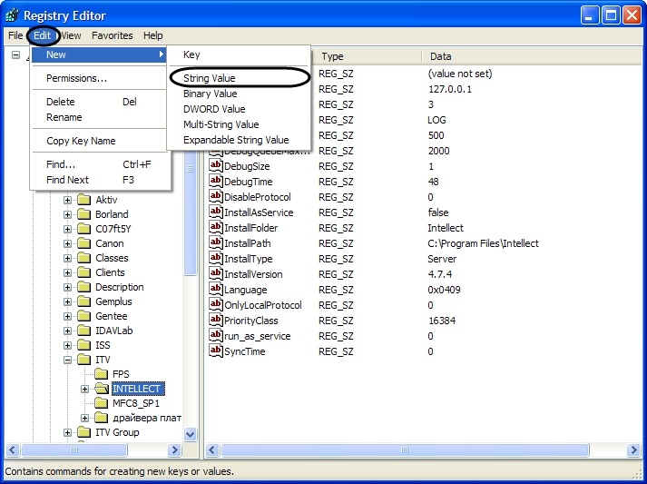 3. In the main menu, select Edit, then New, then String Value.
