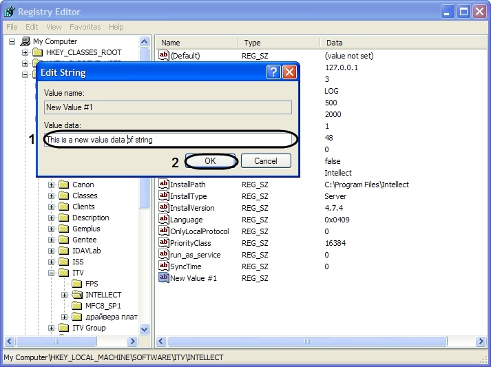 Enter the value into the Value Data field (1) and click OK (2).