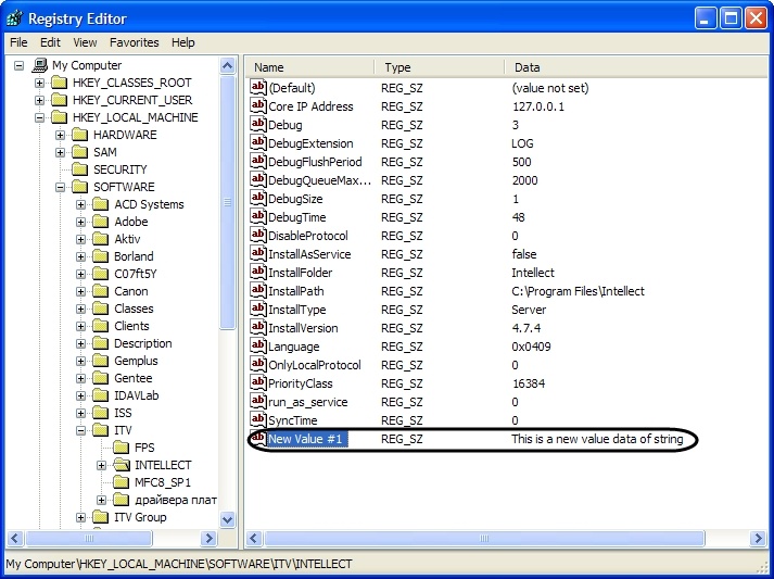 To add a string parameter to a key, do the following: