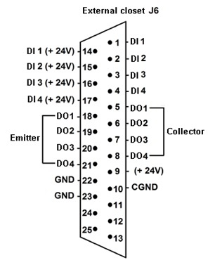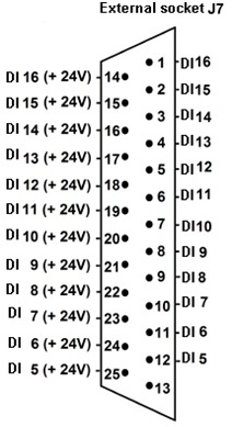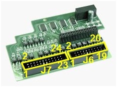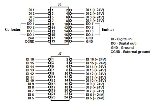 Connectors on the Sensor-Relay card for the interface cable connection (by the example of 4/4 and 16/4 Sensor-Relay cards):J6 and J7 connector pinout: