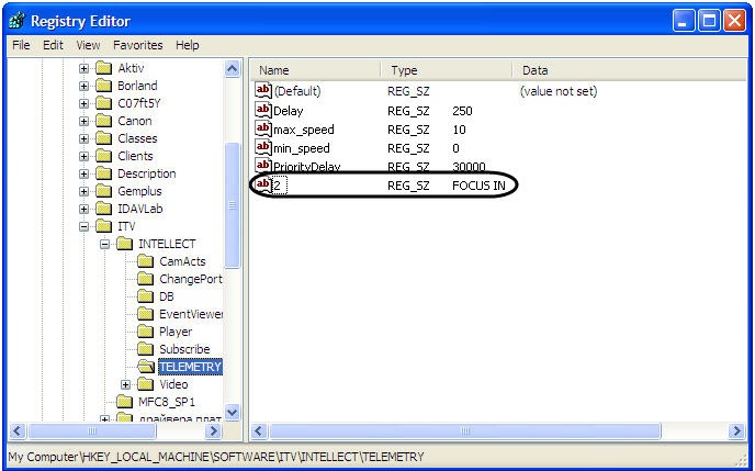 - Open the TELEMETRY folder of the HKEY_LOCAL_MACHINE -> SOFTWARE -> ITV -> Intellect registry branch (HKEY_LOCAL_MACHINE -> SOFTWARE -> Wow6432Node -> ITV -> Intellect for 64-bit system).