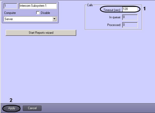 - In the Timeout (sec): field enter the time in seconds after which the call from SIP-device will be deleted from the processing queue (1).