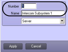 - In the opened box enter the number and name of Intercom Subsytem object and then click Apply button.