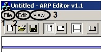 - AprEdit utility window display settings. In this menu, you can enable or disable the display of the toolbar and status bar (3).
