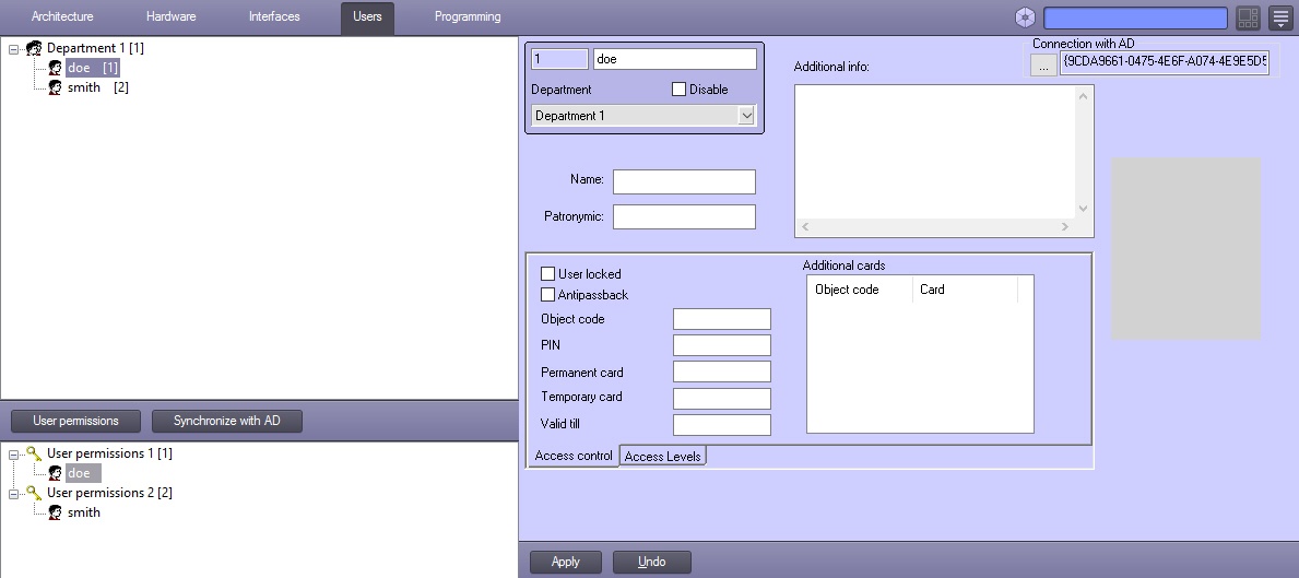 - As a result, the Active Directory user identifier will be displayed in the Connection with AD field.