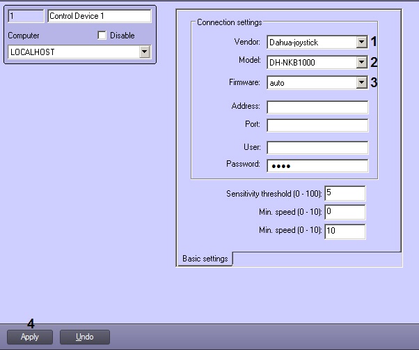 - Select Dahua-joystick from the Vendor dropdown list (1).