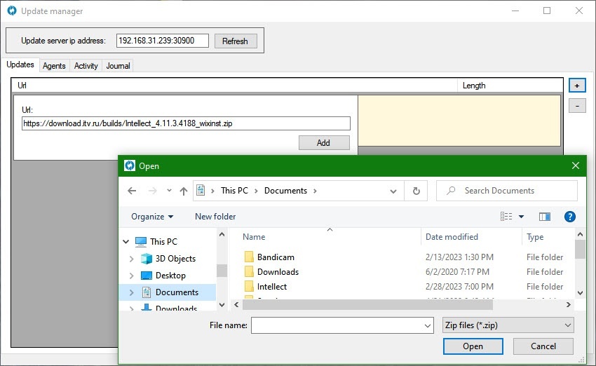 Add file: a standard Windows File Explorer window will open in which you need to specify the path to the zipped update package.