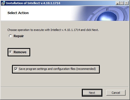 En caso de que el archivo “sync.xml” haya sido modificado, después de eliminar el programa con la opción de guardar la configuración, ésta no se eliminará, pero se sobrescribirá en la siguiente instalación del software INTELLECTTM.Presione el botónSiguiente.