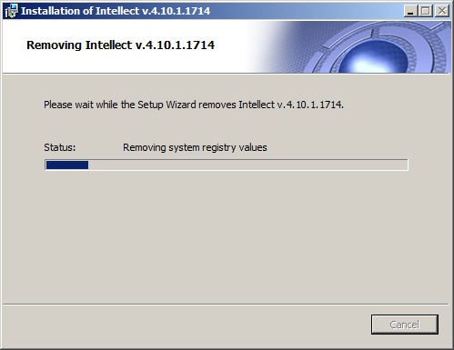 Seleccione Cancelar para interrumpir el proceso de eliminación del software INTELLECTTM.El cuadro de diálogo mostrando el proceso de eliminacióndel software INTELLECTTM se mostrará en pantalla.