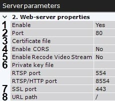 - If the private key file and certificate file are not specified in the Web-Server settings, the connection to the Web-Server is made via HTTP Port only.