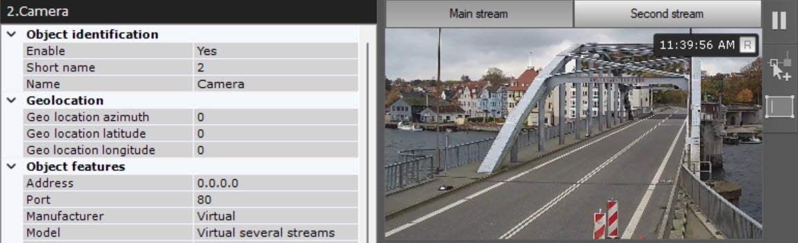 If the camera supports multistreaming, then the Main stream, Second stream and other tabs are available in the window, depending on the number of added video streams (see Configuring video stream settings).