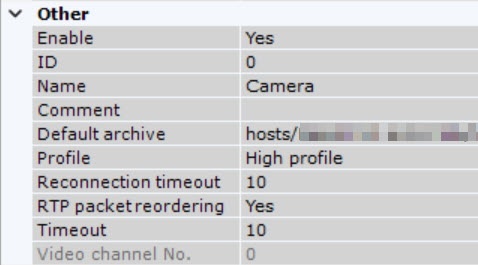 In the Other group, you can configure the parameters for the devices connected via the RTSP protocol (see Configuring connection of devices via RTSP).