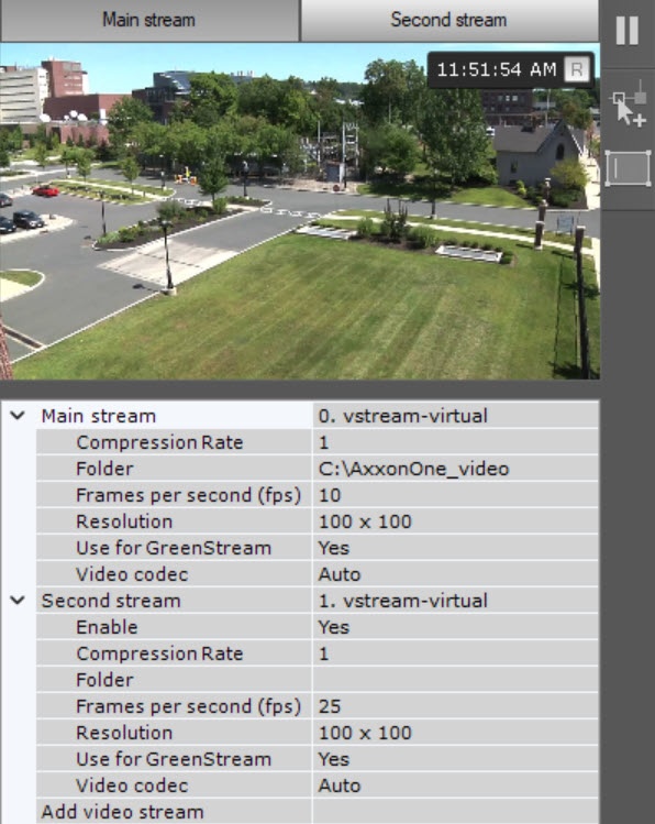 In Axxon One, each stream is assigned a corresponding video camera stream profile, for example: