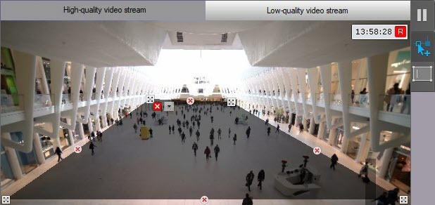 In the preview window, sequentially set the anchor points of the closed area that you want to hide when viewing the live video image. The selected area is masked with a mosaic mask.