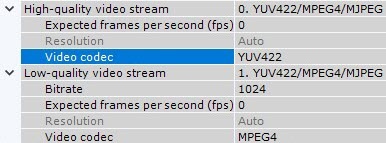 After you added the device, you have to set up its streams. For archive recording and transferring videos over the network, MJPEG codec is recommended; for detection purposes, use YUV422.