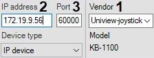 Configure the network PTZ 4-dimensional Joystick Remote Control from Uniview (KB-1100) before you create the appropriate object in the Axxon One VMS. Proceed as follows: