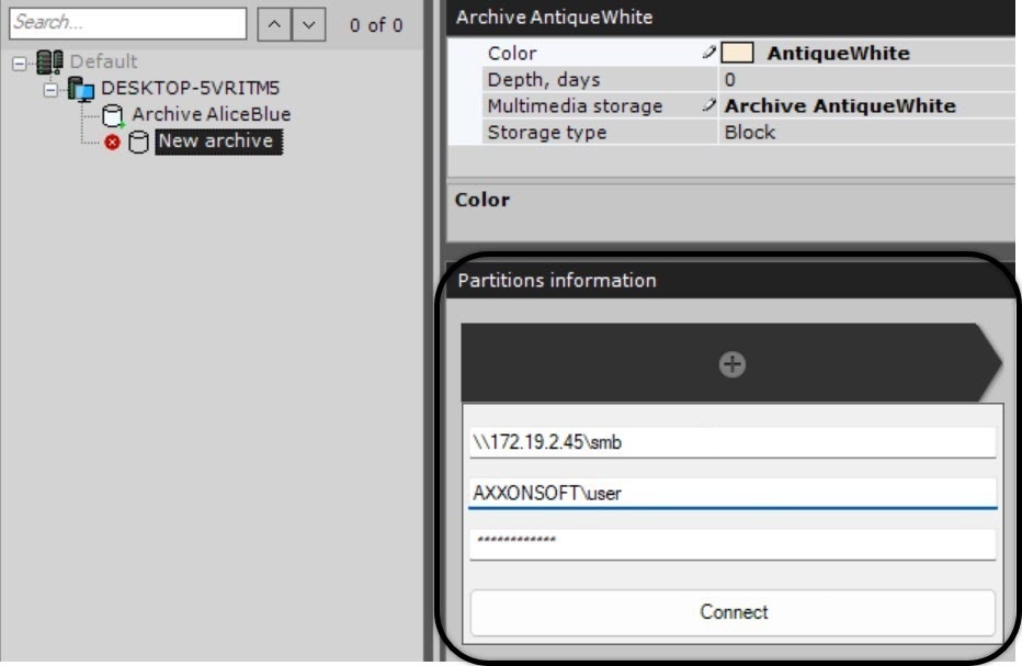 Attempting to connect multiple users at the same time can result in connection errors and storage malfunctions. You can check the active user connections in the Partitions information section.