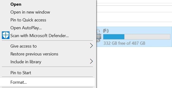 If you need to create an archive file larger than 16 TB, the cluster size for the NTFS file system must be set to a value greater than 4 KB when formatting the disk in Windows OS. To do this, right-click the disk to which the archive file will be written, and in the menu that opens, select the Format... item.