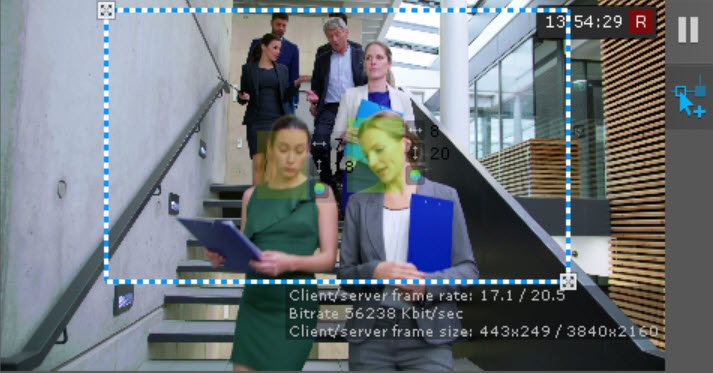 - Loitering in area—detector generates an event when a person stays in the specified area of the frame for a long time and their face is detected.