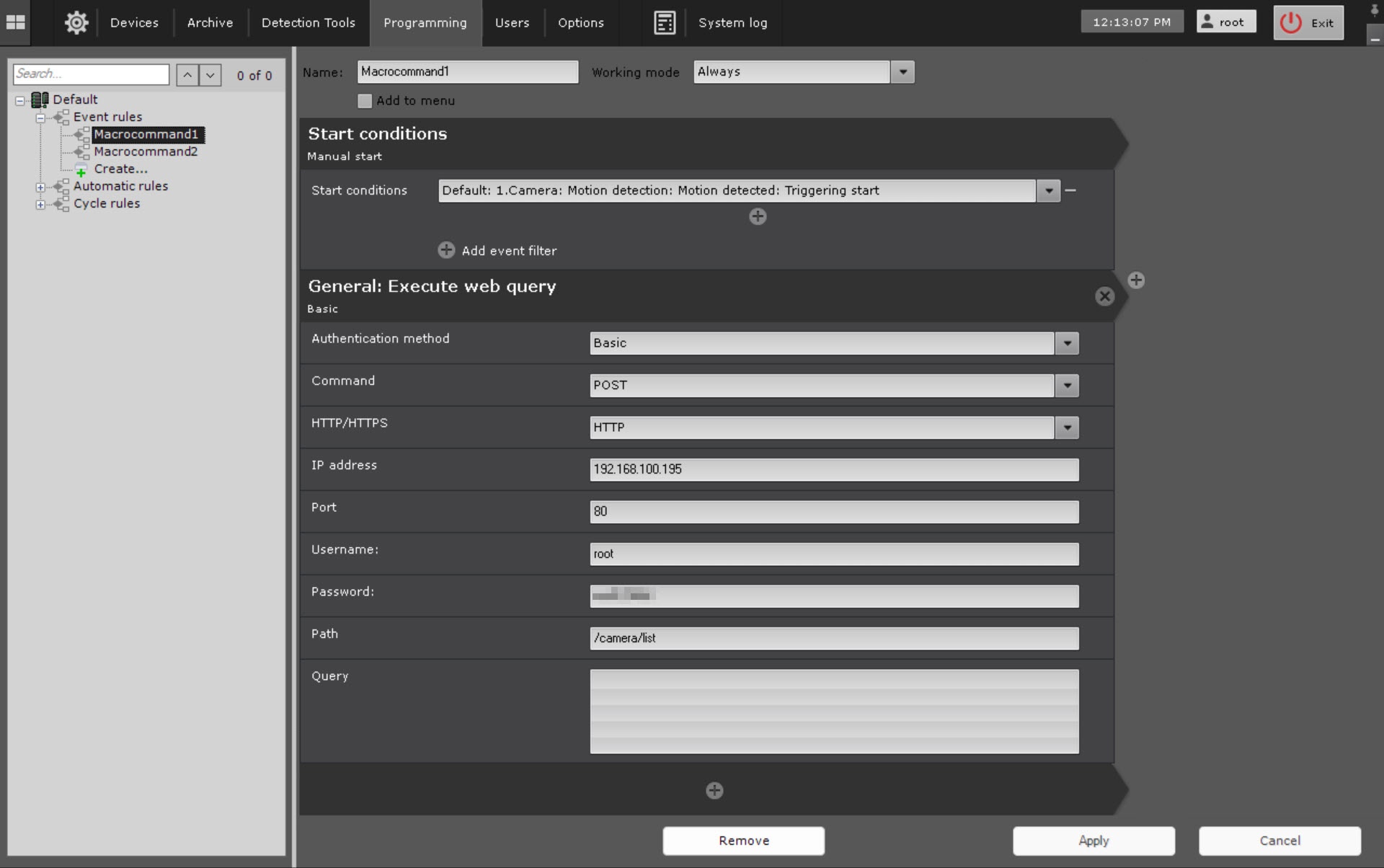 - Select a start condition that triggers a macro (see Configuring start conditions).