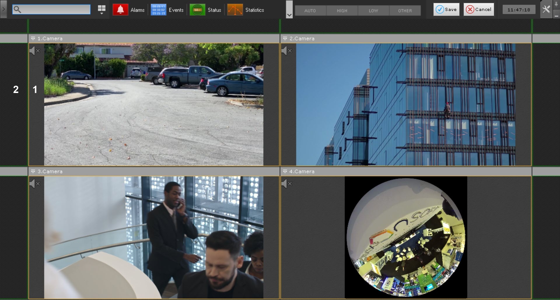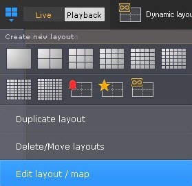 In the layout editing mode, the space is divided by a grid into cells of the surveillance windows (1).