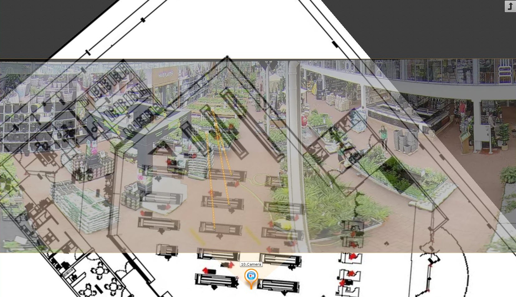 After you add the fourth link, an angle is selected so that the surveillance objects in the video and on the map coincide. As soon as you add all the links, you can change the location of the set points by dragging them while holding down the left mouse button.