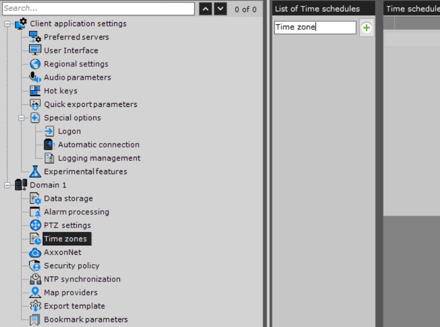 2. In the List of Time schedules column, enter the name of the time zone.