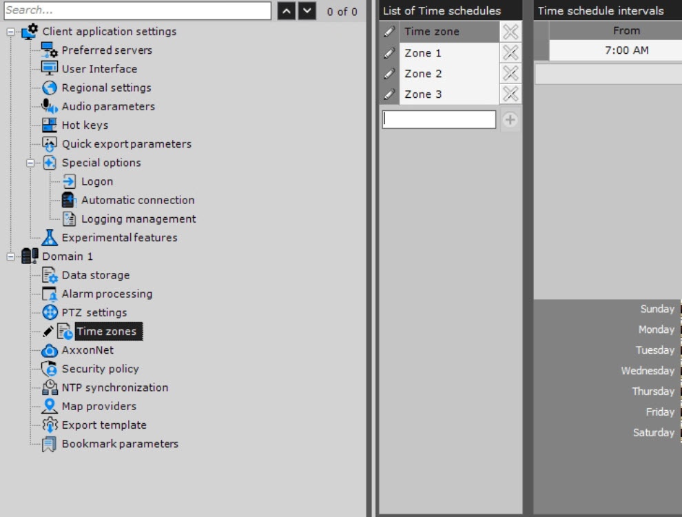 4. Configure the time intervals included in the zone: