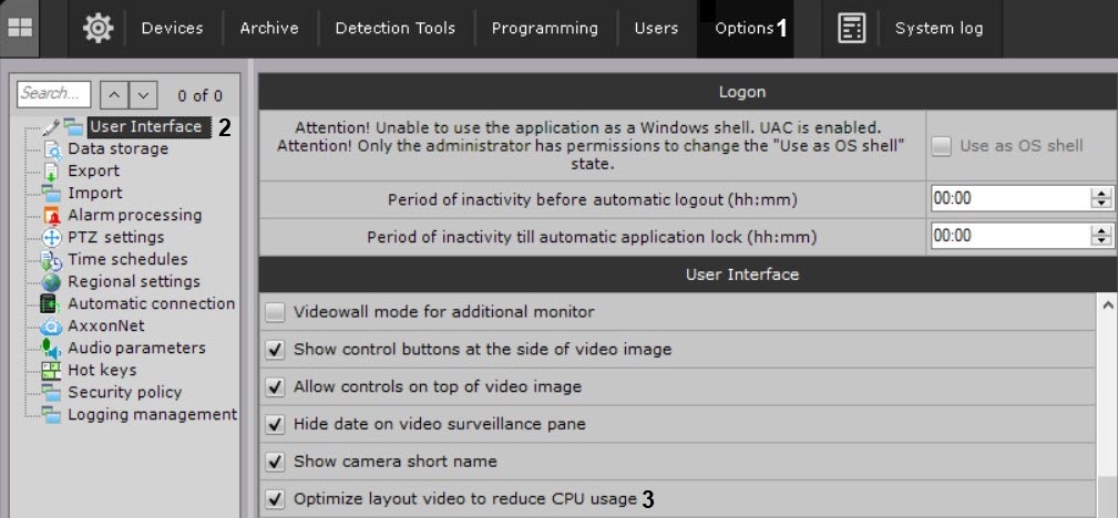 It is possible to automatically reduce the number of the displayed pixels in the layout if the screen resolution is lower than the stream resolution from the video camera. This allows reducing the CPU load.