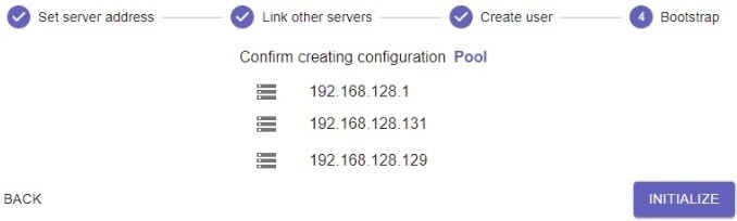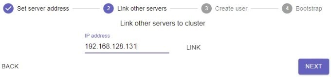 Add the required servers to the cluster. To do this, enter the IP address and click LINK.