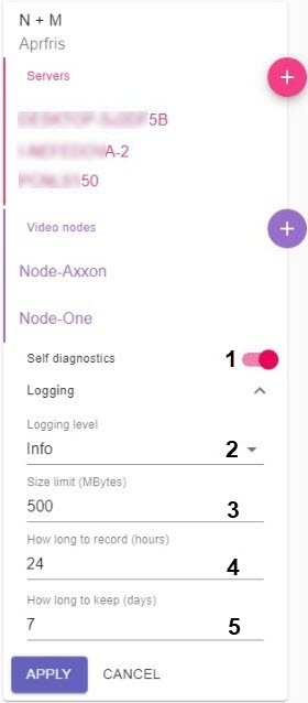 By default, the self-diagnostics service is running on all nodes (see Self-diagnostics service). To stop it, de-activate the Self diagnostics parameter (1).