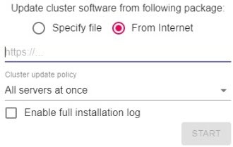 Select the update method: all Servers simultaneously, or one after another (2). In the former case, all nodes operation will be halted until the update is finished, in the latter case the nodes will operate without interruption.