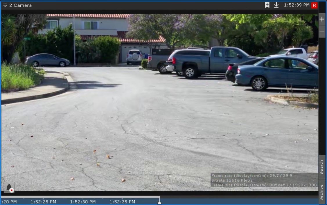 You can display the video statistics in the surveillance window (see User Interface). In the live mode, the video statistics are displayed on an image. In the alarm management, archive, and archive search modes, the fragments of the recorded video statistics are displayed.