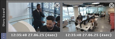 Story board is used to simultaneously export all required fragments from different cameras and archives. The story board becomes available after you set an interval for export on the timeline (see Export).