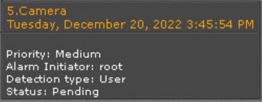 When you hover the mouse cursor over the event preview window, the additional information about the alarm event is displayed: