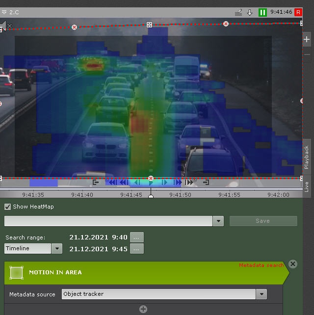 The heat map allows you to check the movement activity in the frame and determine the areas where the objects move mostly.