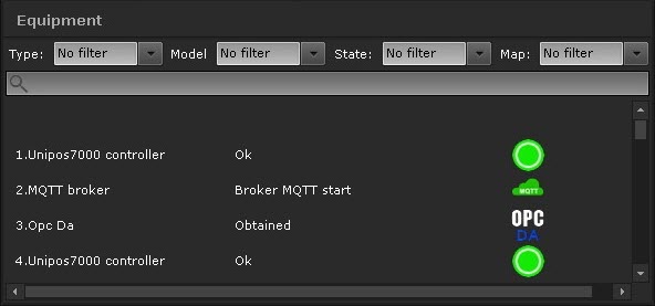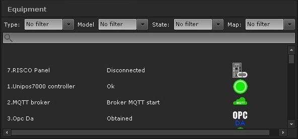 On the board, you can sort the devices by equipment and equipment state columns. To do this, left-click the column. The arrow will show the sorting direction.