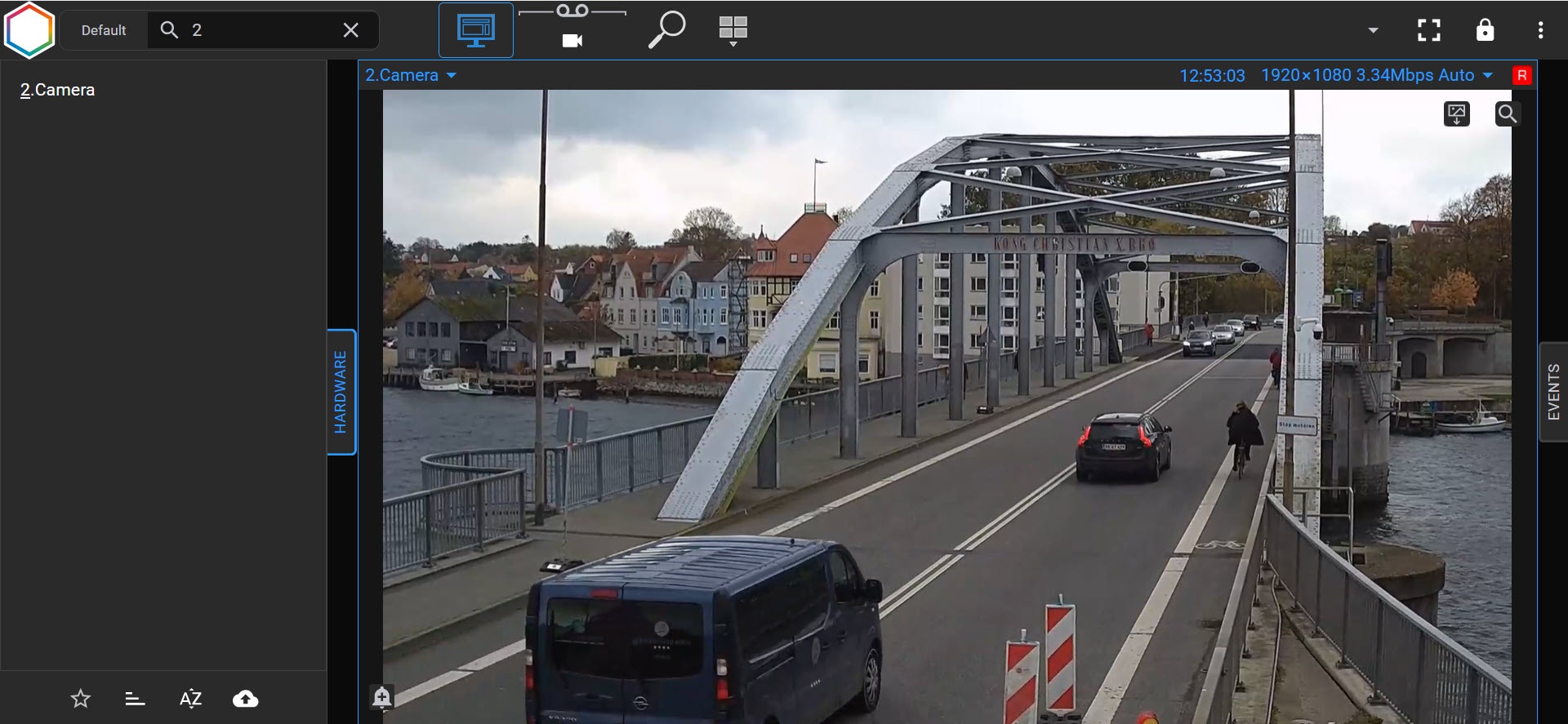 When you start the Web-Client, the cameras panel opens on the left. It displays the list of all available devices.