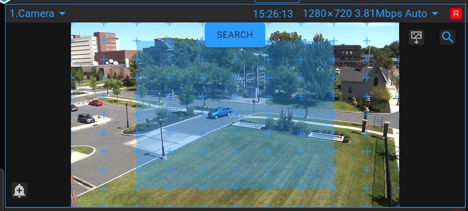 The quick search button is displayed on the fold of the cameras, on the basis of which the detection tools with the ability to track objects are created (see Object tracking).