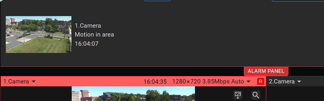 If you click the alarm thumbnail on the panel, you will go to the archive mode to view the event.