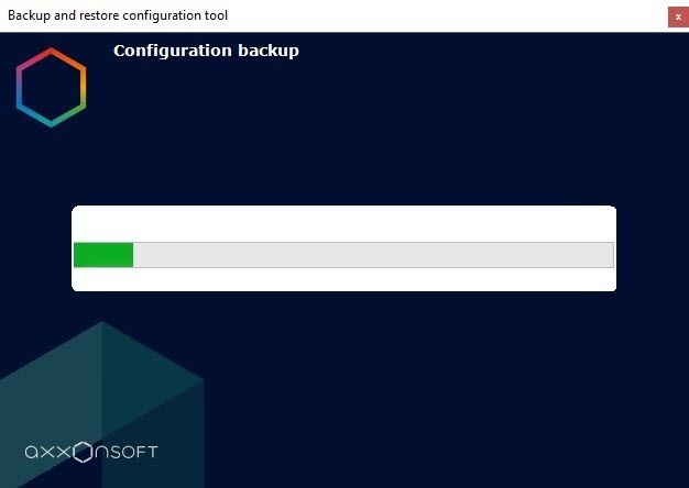 You can start the Backup and restore utility from the Start menu in Windows OS: Start → Programs → Axxon One → Utilities → Backup and restore or from the notification area Copy/Restore (see Tray Tool utility).