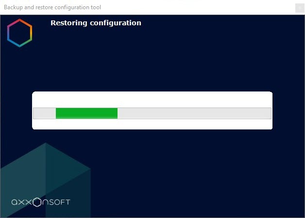 - Click the Next >> button. The process of restoring the configuration backup starts: