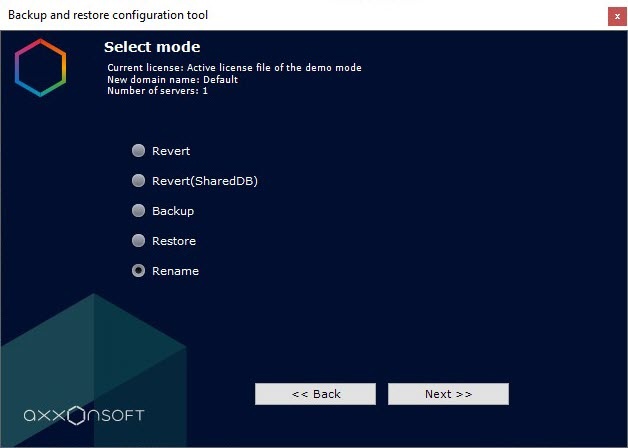 - Set the Restore license checkbox to restore the license key that was stored at the time you backed up the configuration (see Creating a configuration backup). If you don't restore the license, Axxon One will work in the demo mode.