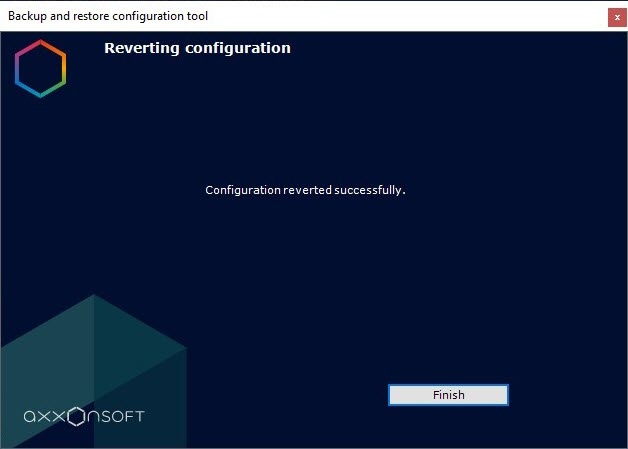 When the process of reverting the server configuration is complete, a window is displayed with a message that the operation was successful: