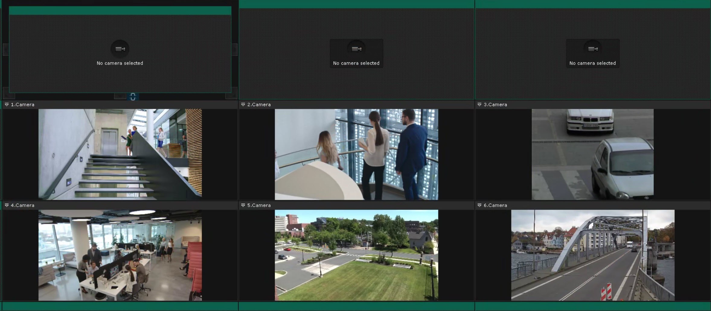 If you don't have enough space for display, new cameras appear only after you free up space in the grid (when the user processes an alarm (see Assessing an alarm event) if the response time or the period of any camera display expires (see Alarm processing)).
