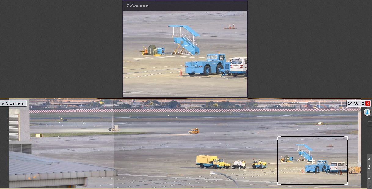 - If the surveillance window is inactive and the autozoom option is enabled, the system specifies the minimal area containing all tracked objects and applies to it the maximum digital zoom.
