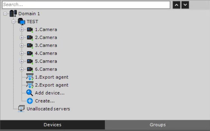Manual grouping of cameras is used for configuring the group access rights and quick selection of the required camera for display. The hardware grouping settings are available for the users with the appropriate access level settings (see Roles).